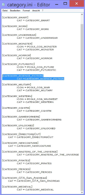 I put them in an own category called "Science-Fiction". To make this category work you have to edit your "category.ini" file like shown on the example-picture. Just add the blue marked lines into your list by hand.