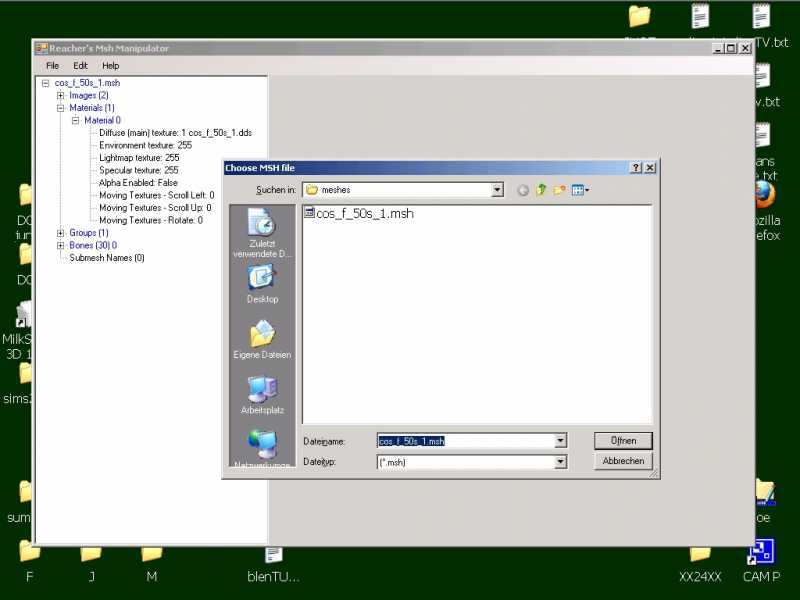 Irgendeinen *.msh exportieren und in MILKSHAPE verändern etc.