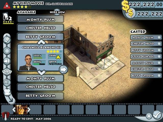 Die "The Movies Premieren Edition" enthält eine Bonus-CD mit dem 38-minütigen Game-Soundtrack zum abspielen im CD-Player, dem Trailer, zusätzlichen Kostümen (die mit S&E später auch dabei waren) und eine Papier-Minimap. Die Screenshots sind tatsächlich ältere aus einer Vorgängerversion. Hier noch ein paar Screens, wie sich The Movies über die Entwicklungsjahre hinweg entwickelt hat: